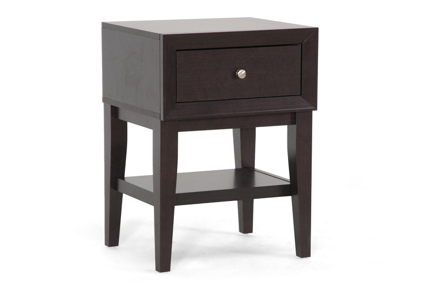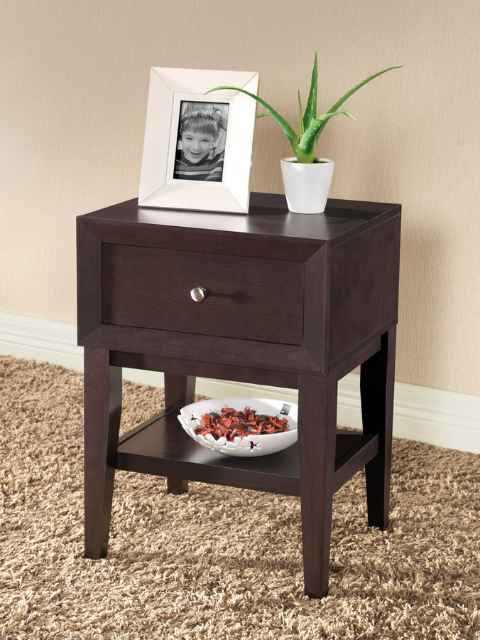 Please note due to current situation, product might not be available. Please do call to check for availability. All stock will be verified before order is processed.Description Accent Nightstand in Dark Brown Engineered Wood