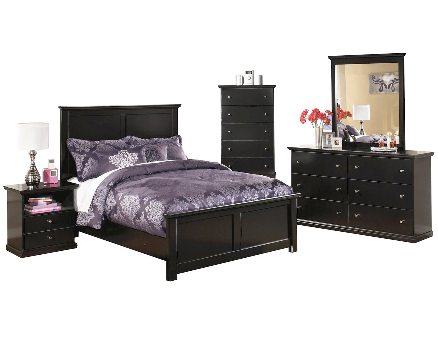 The Ashley Furniture Maribel 5 piece Queen Panel Bed with Chest masters the art of understated elegance. This easy-to-love look makes just the right statement, whether your taste leans toward classic or contemporary. Clean and simply striking.