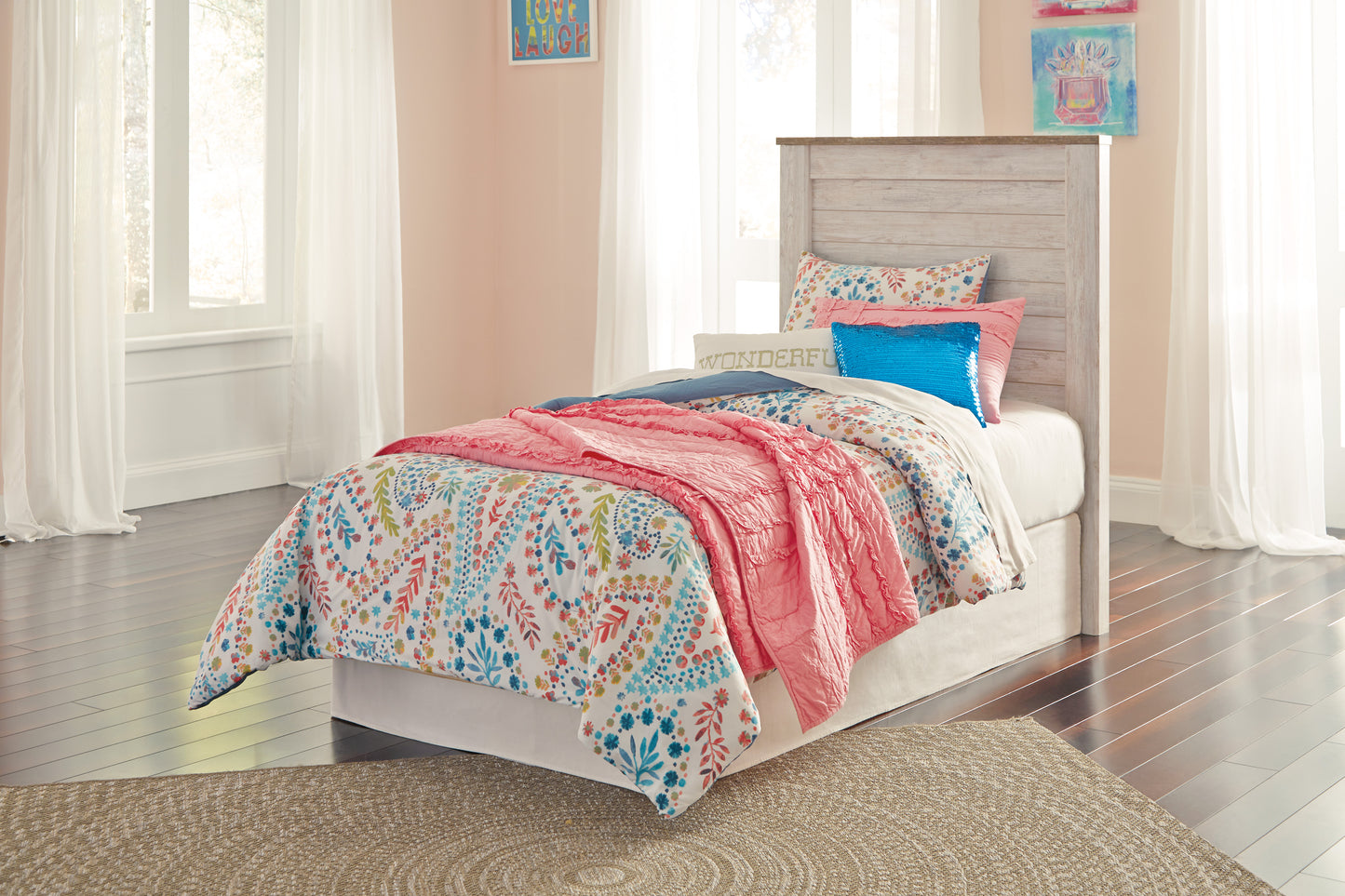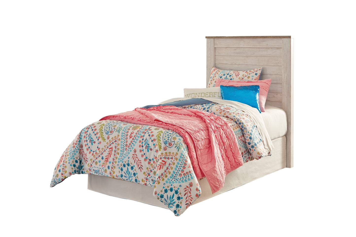 The Ashley Furniture Willowton Full Panel Headboard ultimate look for a beach cottage or shabby chic inspired retreat, the Willowton panel headboard carries you away to a dreamy time and place. Driftwood whitewashed finish is wonderfully easy on the eyes. Plank-style detailing incorporates a classically rustic touch, so homey and comforting. Mattress, bed frame and foundation/box spring sold separately.