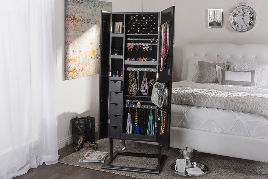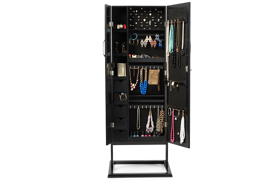 Please note due to current situation, product might not be available. Please do call to check for availability. All stock will be verified before order is processed.Description Contemporary Double Door Storage Jewelry Armoire Cabinet in Black