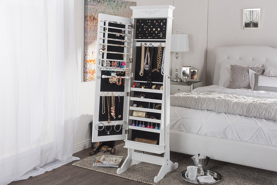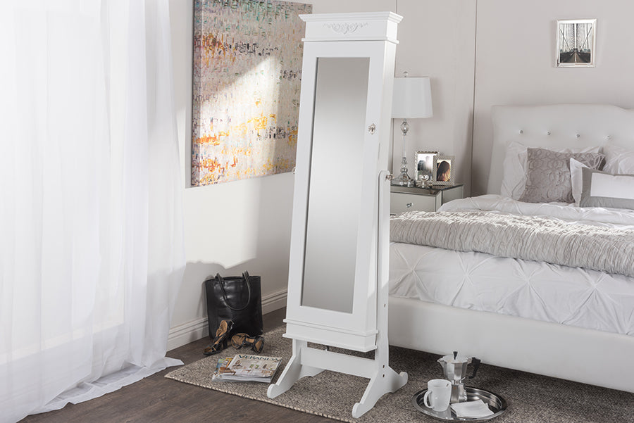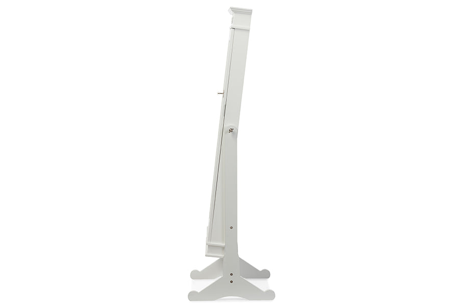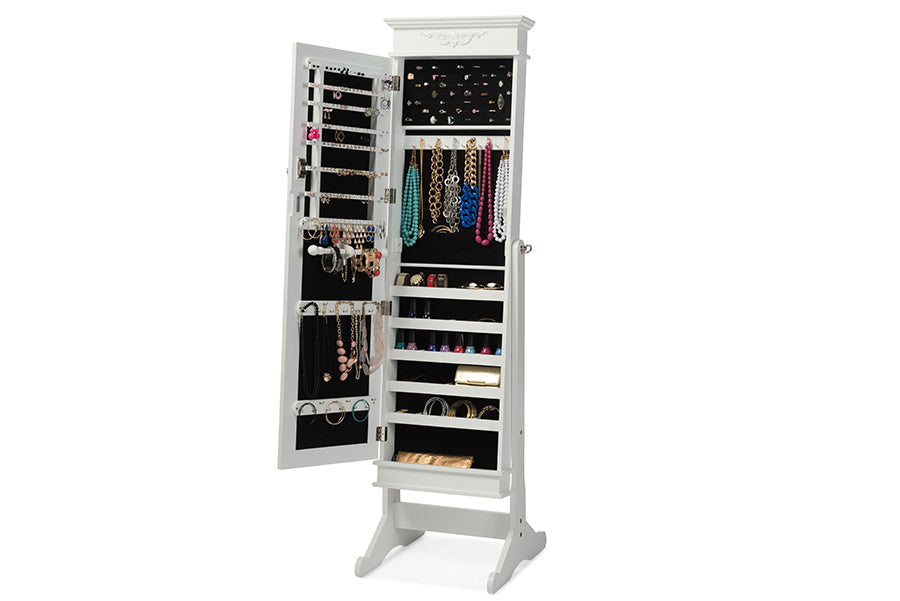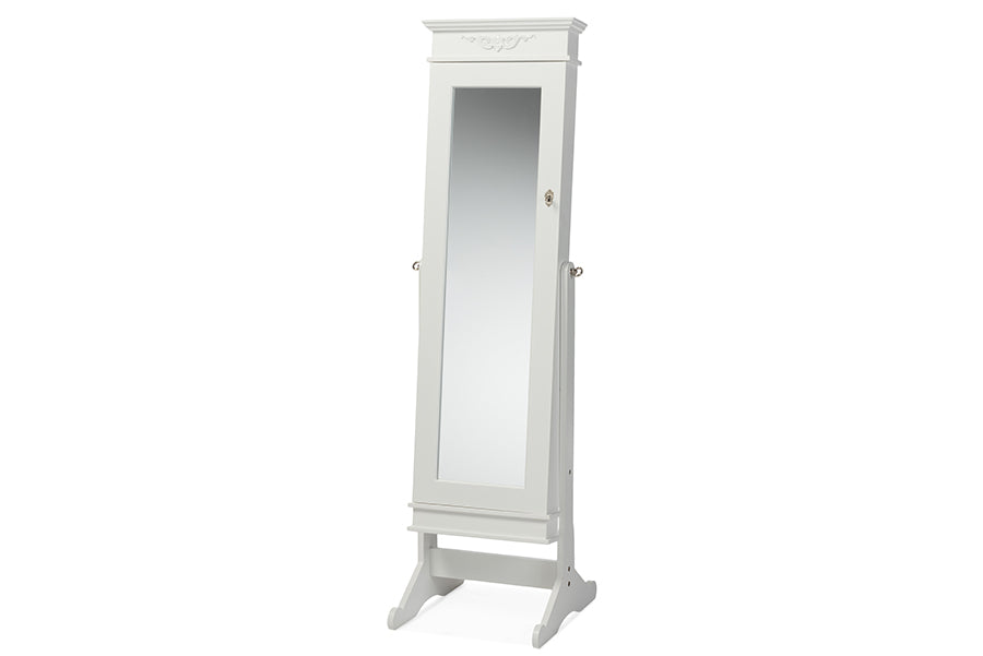 Please note due to current situation, product might not be available. Please do call to check for availability. All stock will be verified before order is processed.Description Contemporary Full Length Cheval Mirror Jewelry Armoire in White