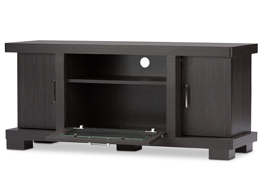 Please note due to current situation, product might not be available. Please do call to check for availability. All stock will be verified before order is processed.Description Contemporary TV Stand in Dark Brown Engineered Wood/Vinyl/Glass