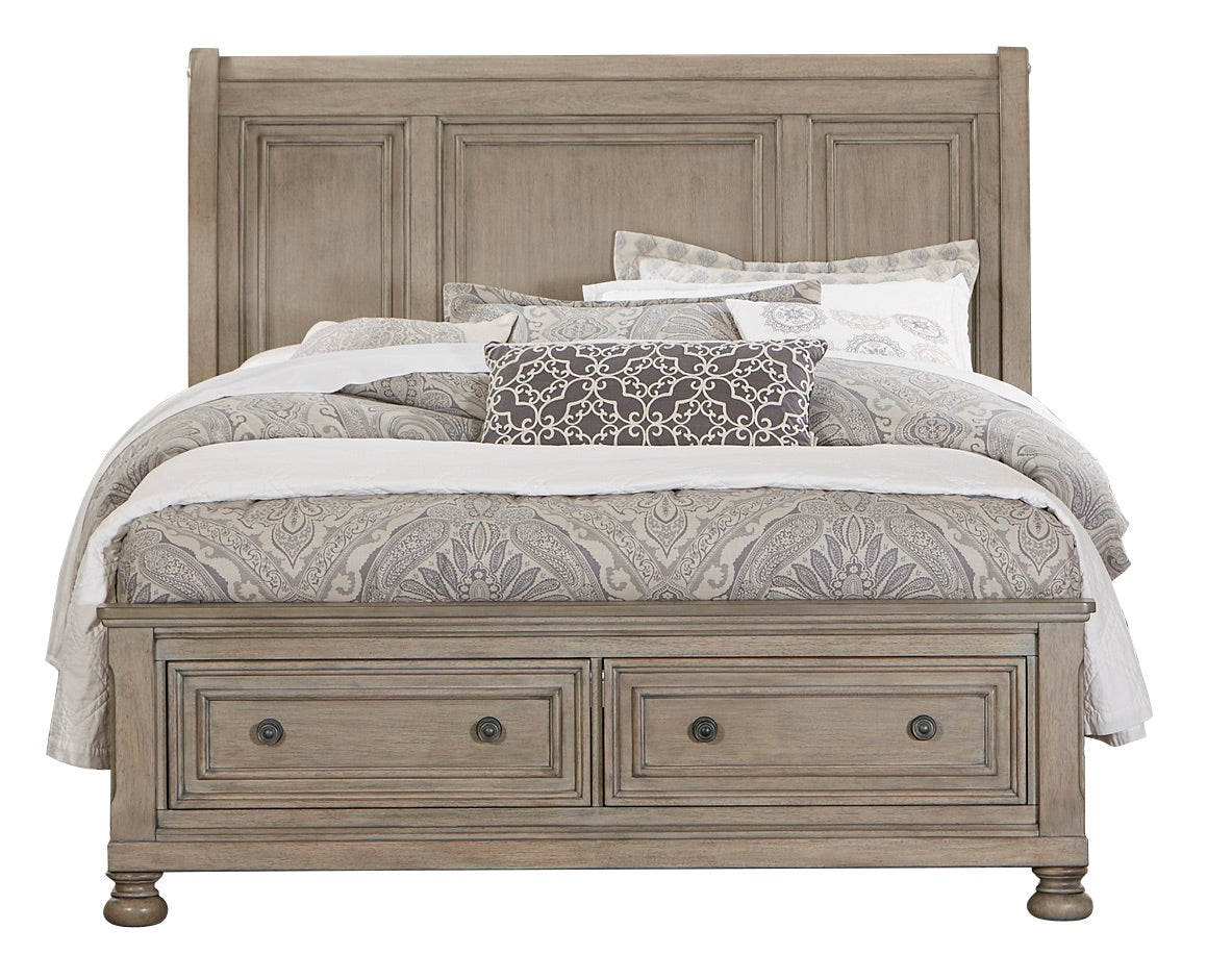 - E King Sleigh Platform Bed with Footboard Storage - 81 W x 87 D x 57 H