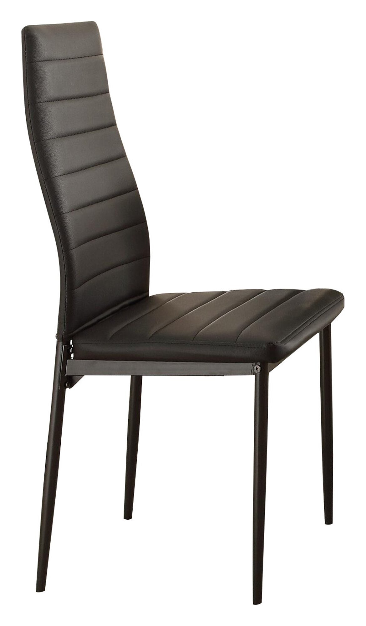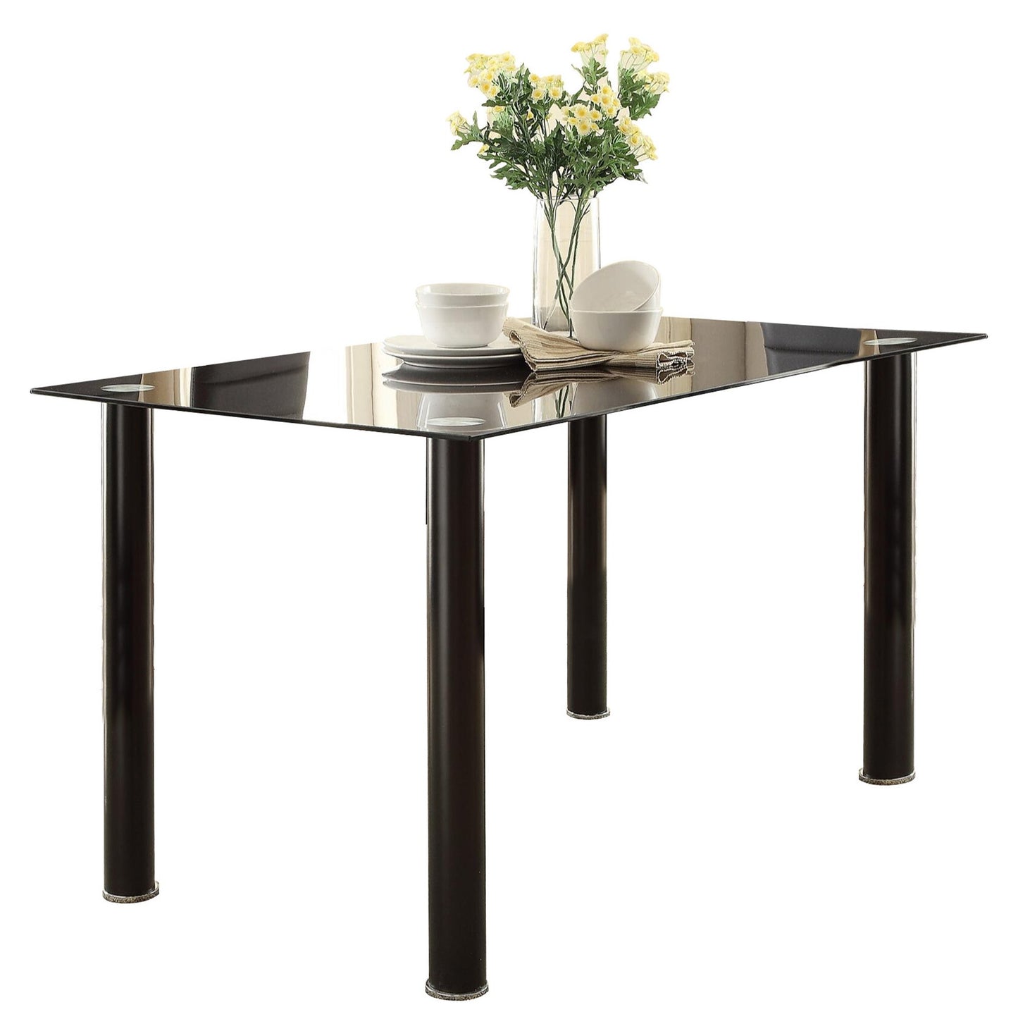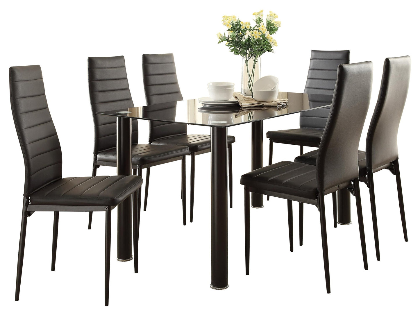 The Homelegance Florian 7PC Dining Set Table Glass Top Six Side Chair in Black. Ultra modern styling is exemplified with the design of the Homelegance Florian Collection. The collection is offered in two color options � black metal legs with black glass top or white metal legs with clear glass top � for the perfect fit in your casual dining space. Bi-cast vinyl covered seats in coordinating black or white complete the contemporary look.