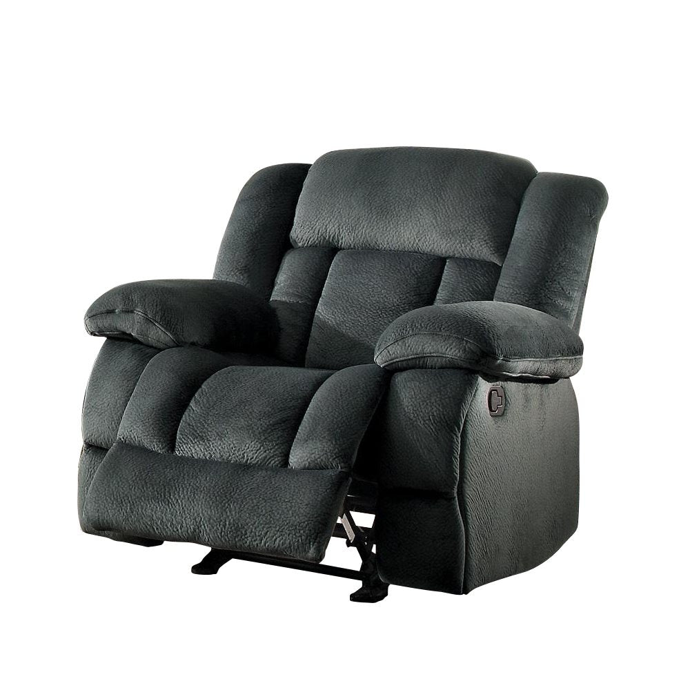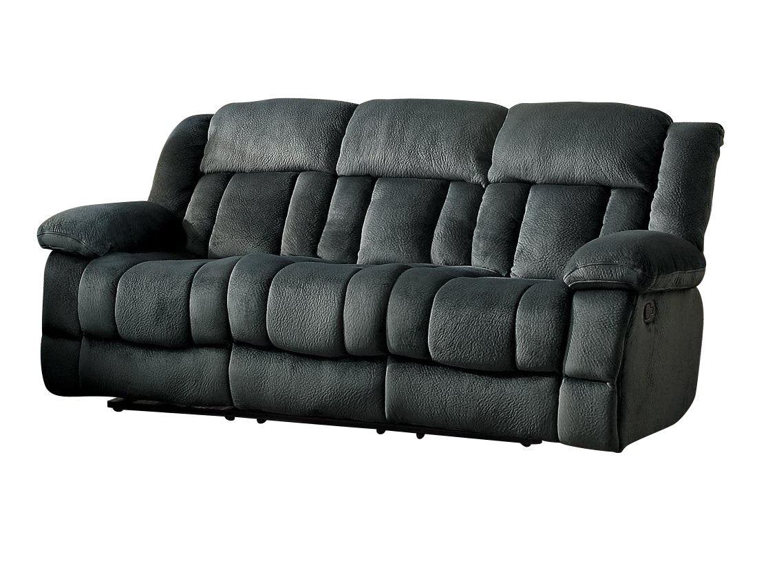 The Homelegance Laurelton 3PC Double Reclining Sofa, Double Glider Reclining Love Seat with Center Console & Glider Reclining Chair in Microfiber - Charcoal. Generous seating combined with functional touches makes the Laurelton Collection the perfect addition to your living room. The double glider reclining love seat�s center console features dual cup holders and hidden storage. Charcoal and chocolate textured plush microfiber fabric are available as cover options for this amply appointed seating group.
