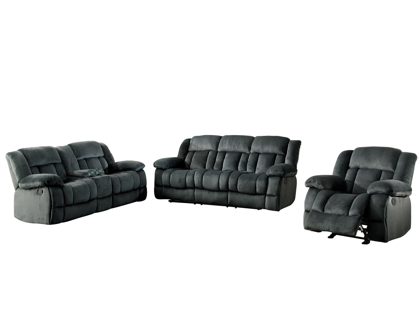 Order Include: Double Reclining Sofa, Double Glider Reclining Love Seat with Center Console, Glider Reclining Chair