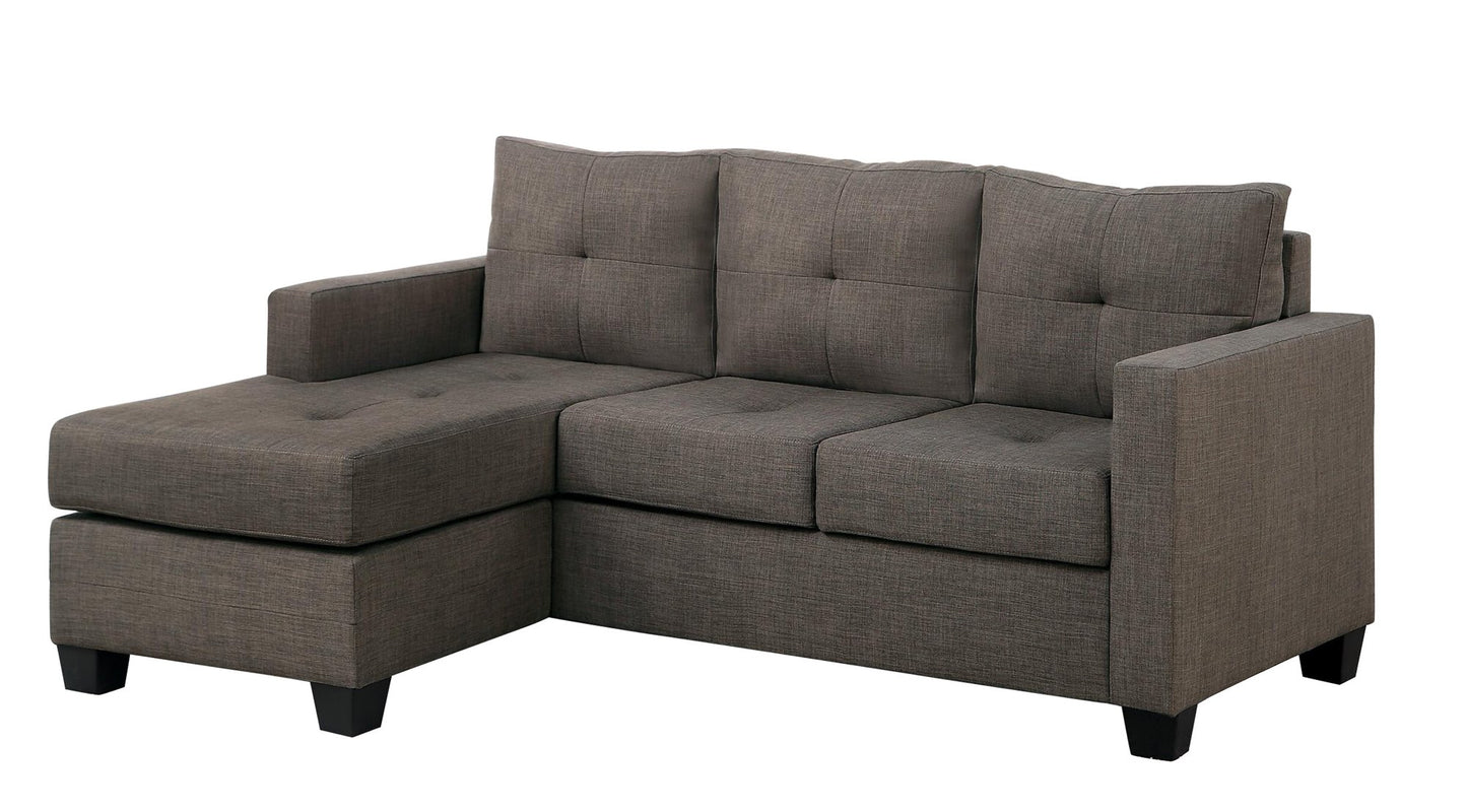 The Pavati Reversible Sofa Chaise in Fabric - Brown Gray. Not every home is created the same and the unique design of the Pavati Collection allows for maximum flexibility with its reversible chaise. With brownish gray fabric, refined track arm, and comfortable seating, the collection�s style is compatible in a number of settings. The matching ottoman provides additional comfort and function to your living area.