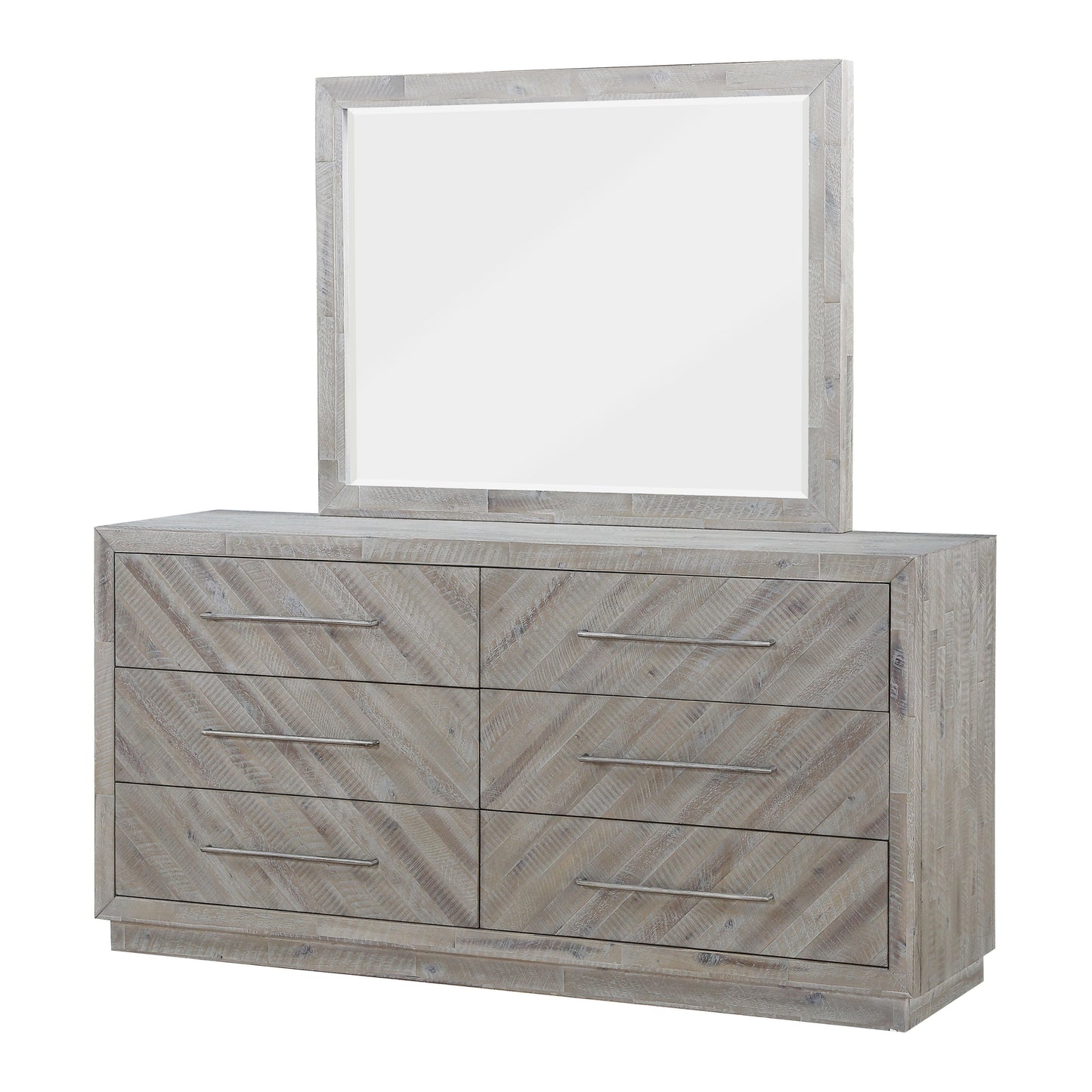 Rustic and contemporary. The Alexandra platform bed's appeal comes from the roughhewn Acacia used in its creation. Hand-selected planks of solid wood are carefully sanded, stained and whitewashed for a driftwood appeal that accentuates the active grain and draws out natural knots and markings from the milling process. They are then inlaid over plywood to create a handsome herringbone pattern for the crowning contemporary touch.