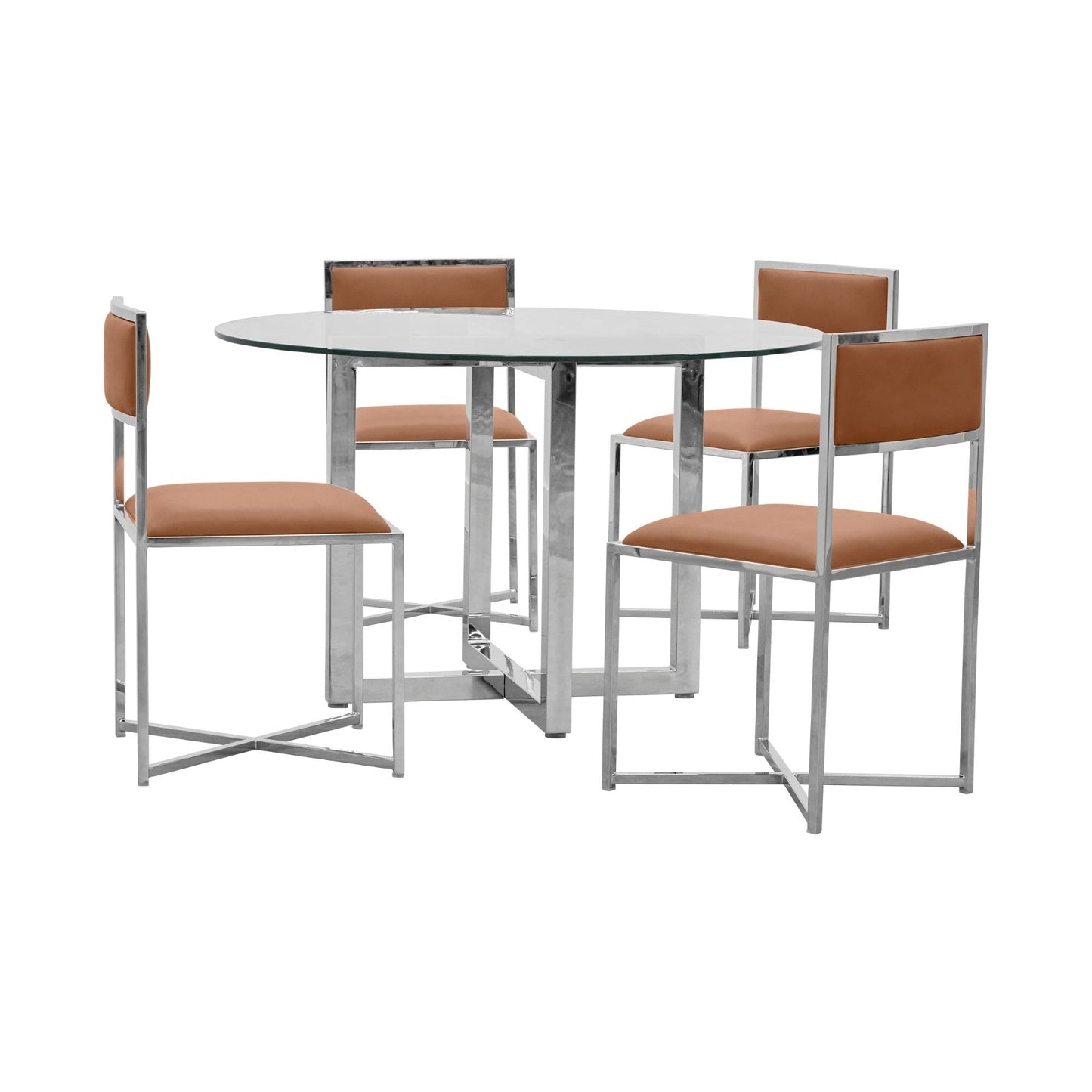 This mix-and-match program offers a flexible selection of dining room pieces designed to add contemporary polish to your dining space. Chrome-plated stainless steel bases offer a striking geometric finish.