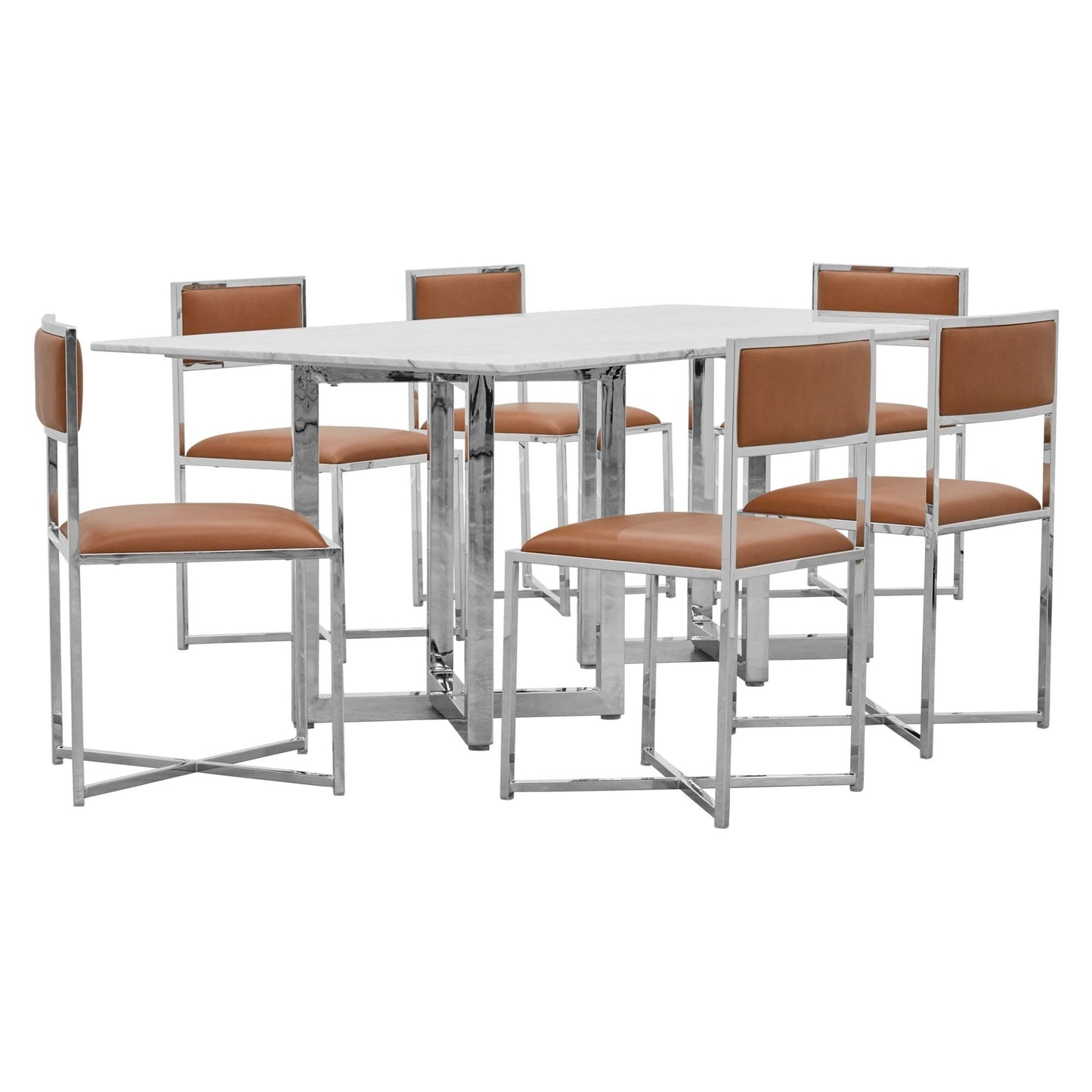 This mix-and-match program offers a flexible selection of dining room pieces designed to add contemporary polish to your dining space. Chrome-plated stainless steel bases offer a striking geometric finish.