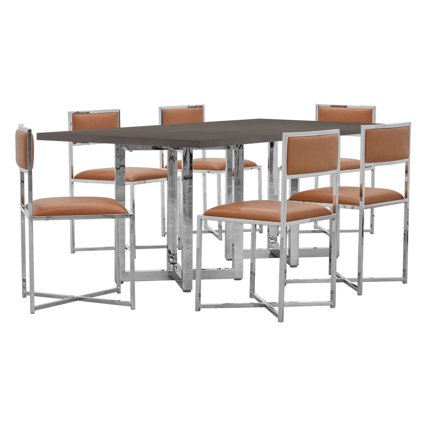 This mix-and-match program offers a flexible selection of dining room pieces designed to add contemporary polish to your dining space. Chrome-plated stainless steel bases offer a striking geometric finish.