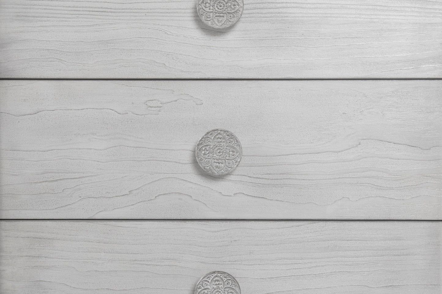 Add a Bohemian style to your bedroom with the globally inspired Boho Chic dresser. Crisp edges, delicately curved feet and carved drawer pulls complete the look.