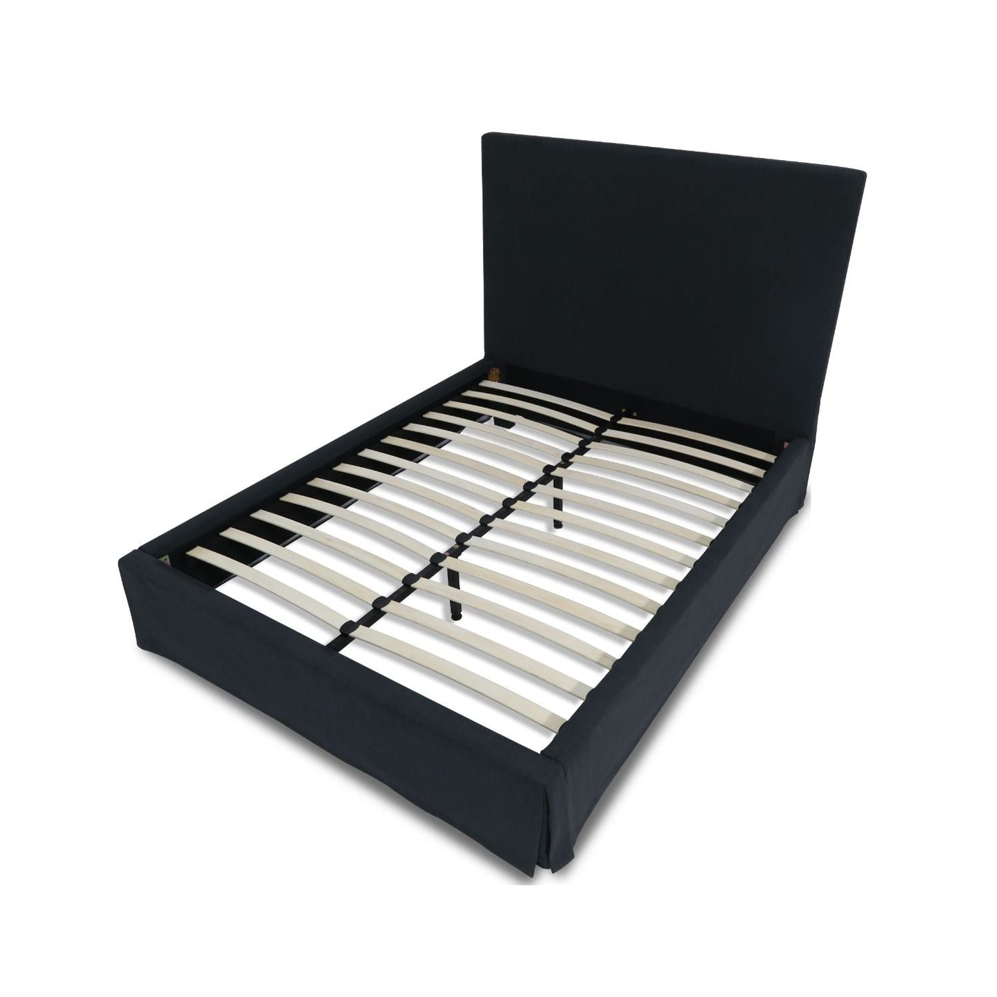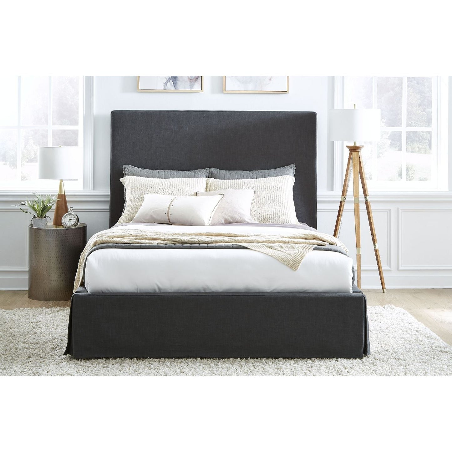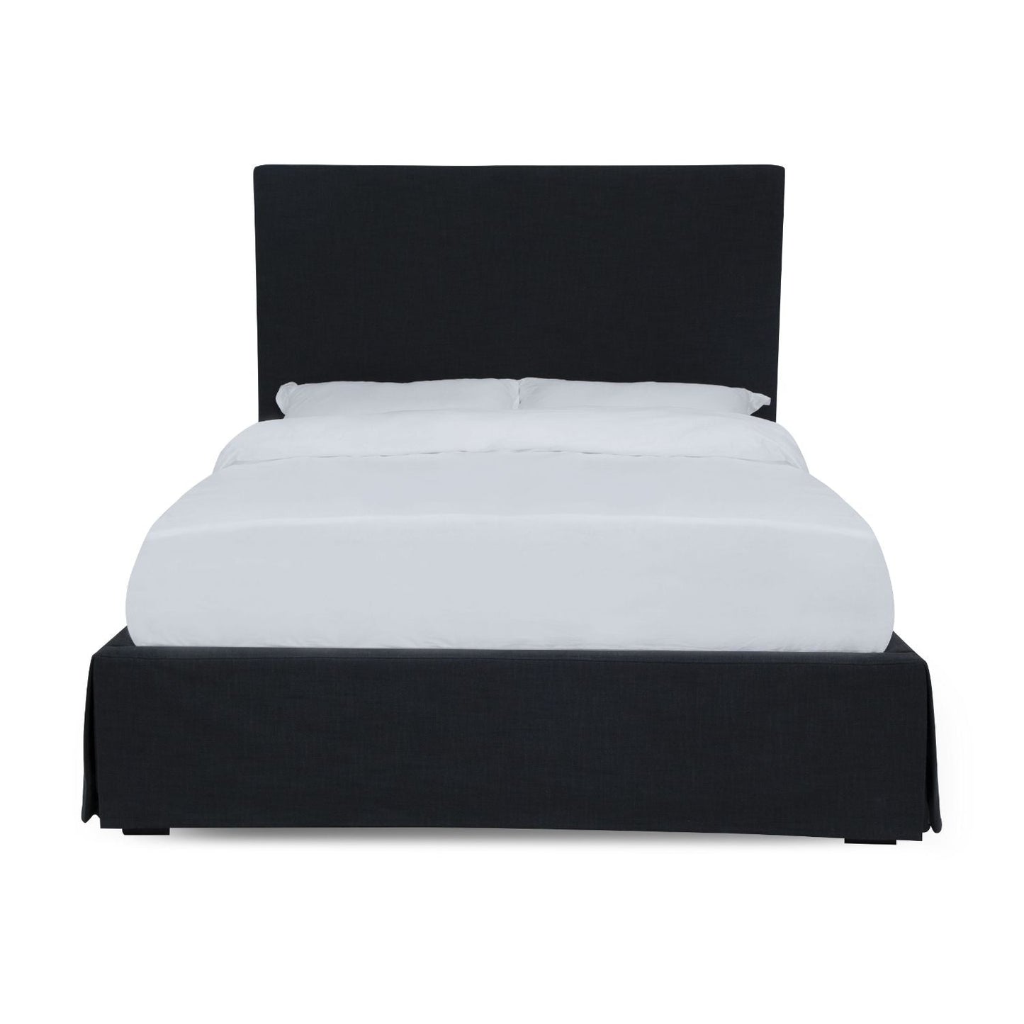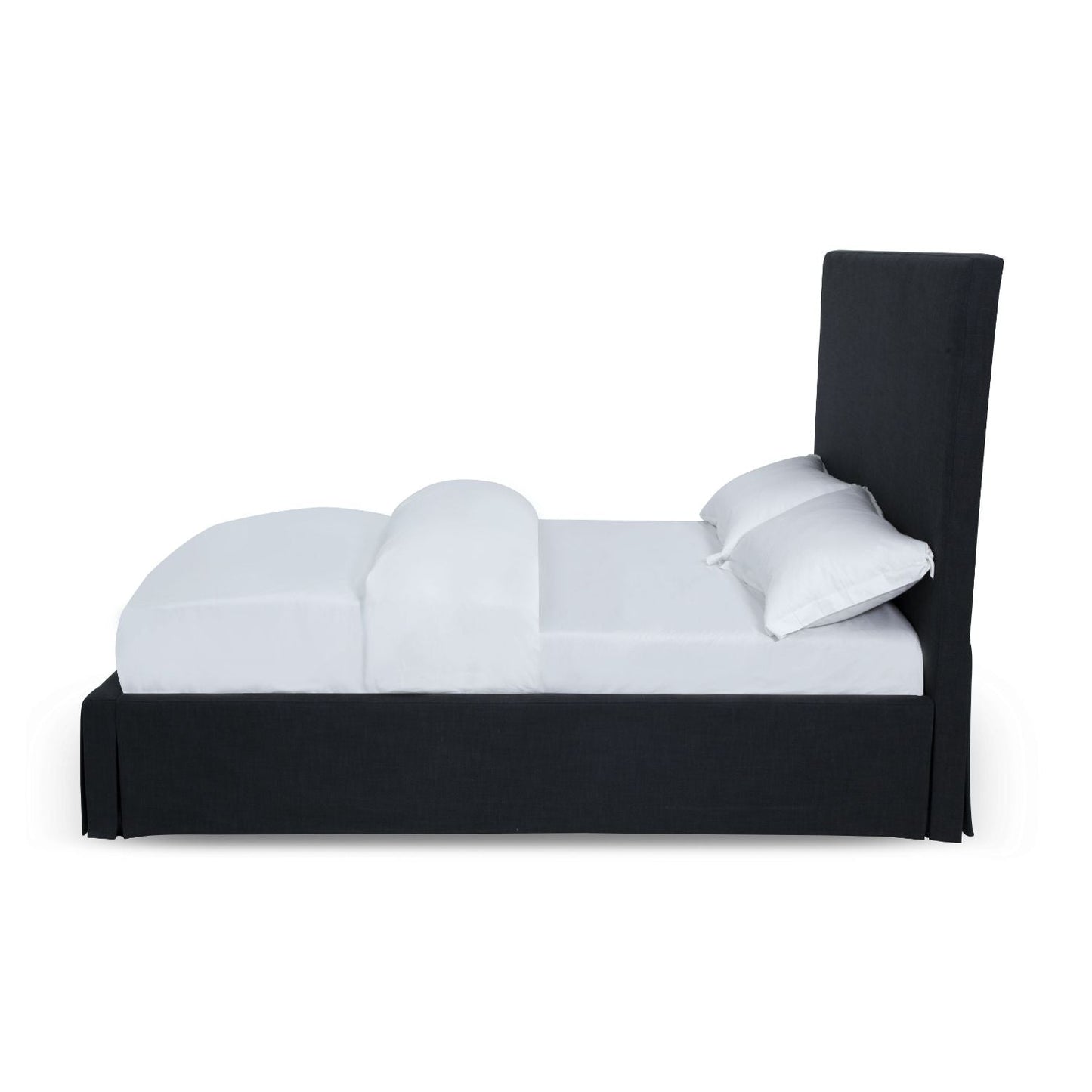 Designed with clean lines in an array of colors, our Juliette upholstered bed collection brings relaxed luxury to your bedroom. Made with solid wood framing, layered foam and soft linen-blend fabric, this group creates a no-maintenance slipcover look with skirted bases and inverted corner pleats. Available in panel, wingback, camelback and clipped corner configurations.