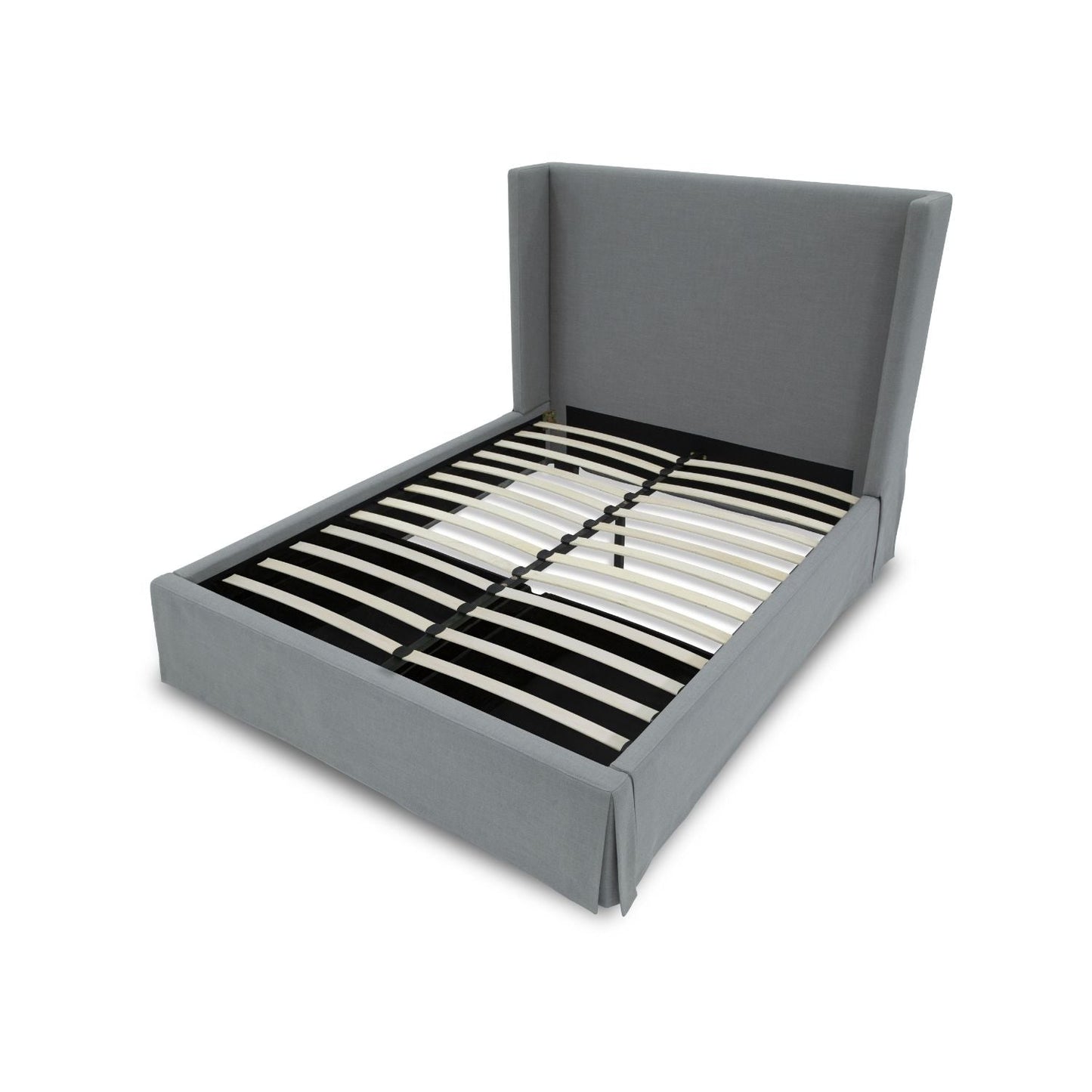 Designed with clean lines in an array of colors, our Juliette upholstered bed collection brings relaxed luxury to your bedroom. Made with solid wood framing, layered foam and soft linen-blend fabric, this group creates a no-maintenance slipcover look with skirted bases and inverted corner pleats. Available in panel, wingback, camelback and clipped corner configurations.
