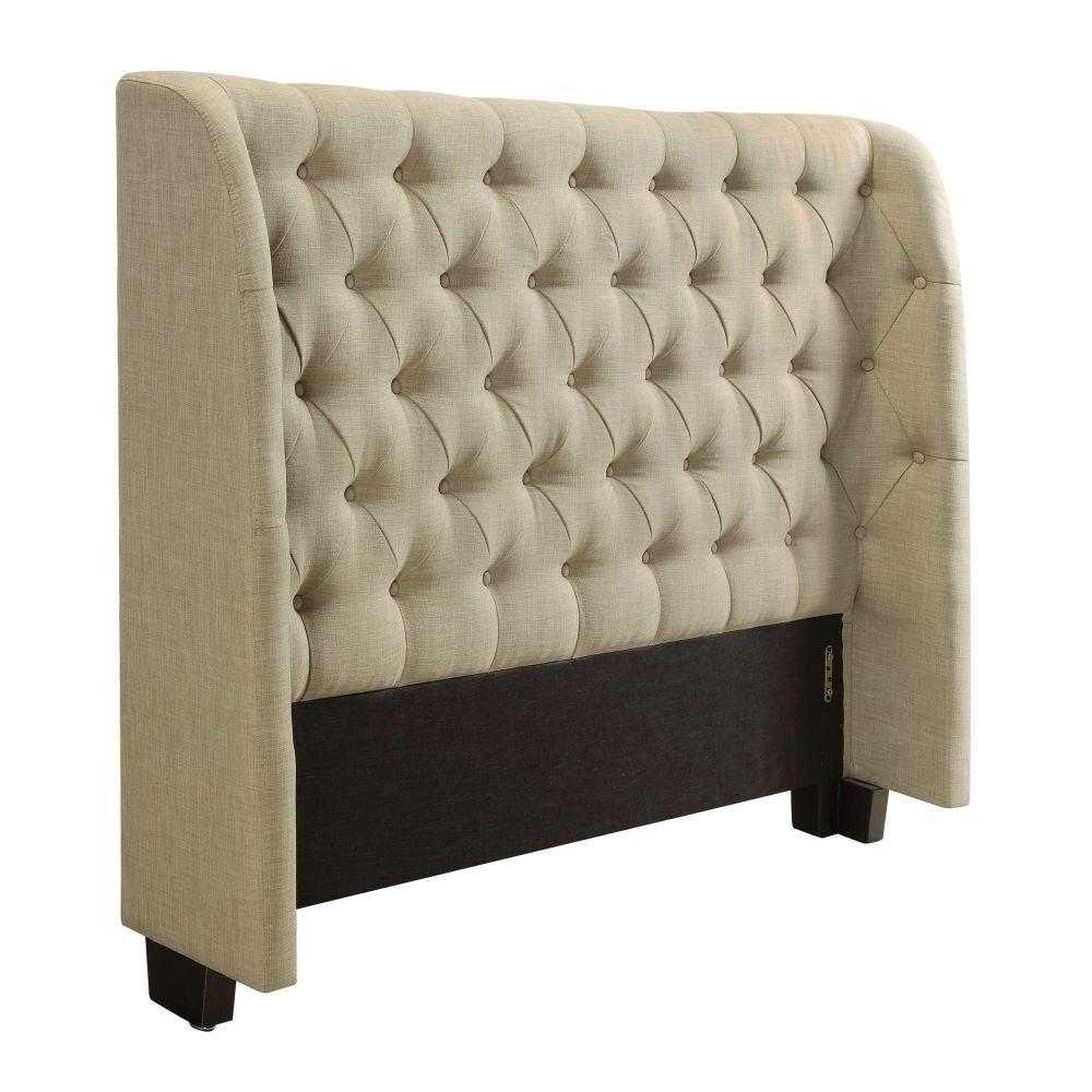 The Modus Geneva Cal King Levi Headboard Bed In Toast. Indulgent tufting and cushioning surround you in luxury with the Geneva upholstered bed collection from Modus Furniture. Available as headboards or complete beds, each model is wrapped from head to toe in a textural linen fabric for a tailored finish. With styles ranging from sleek and modern to lavishly hand tufted, this collection features hand-hammered nails, high arching curves and piped edges that highlight each angle and shape.