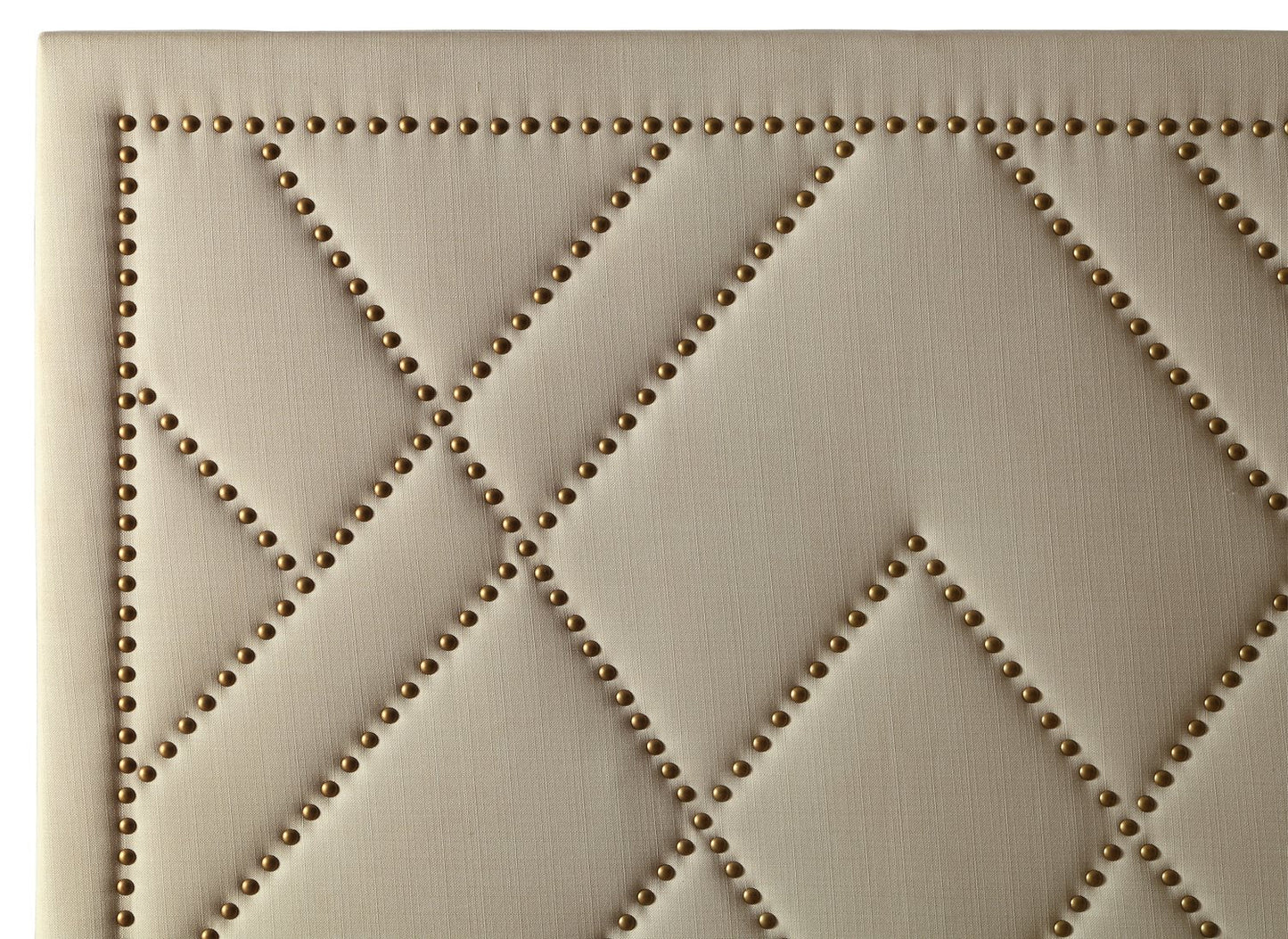 The Modus Geneva Queen Vienne Headboard Bed In Powder. Indulgent tufting and cushioning surround you in luxury with the Geneva upholstered bed collection from Modus Furniture. Available as headboards or complete beds, each model is wrapped from head to toe in a textural linen fabric for a tailored finish. With styles ranging from sleek and modern to lavishly hand tufted, this collection features hand-hammered nails, high arching curves and piped edges that highlight each angle and shape.