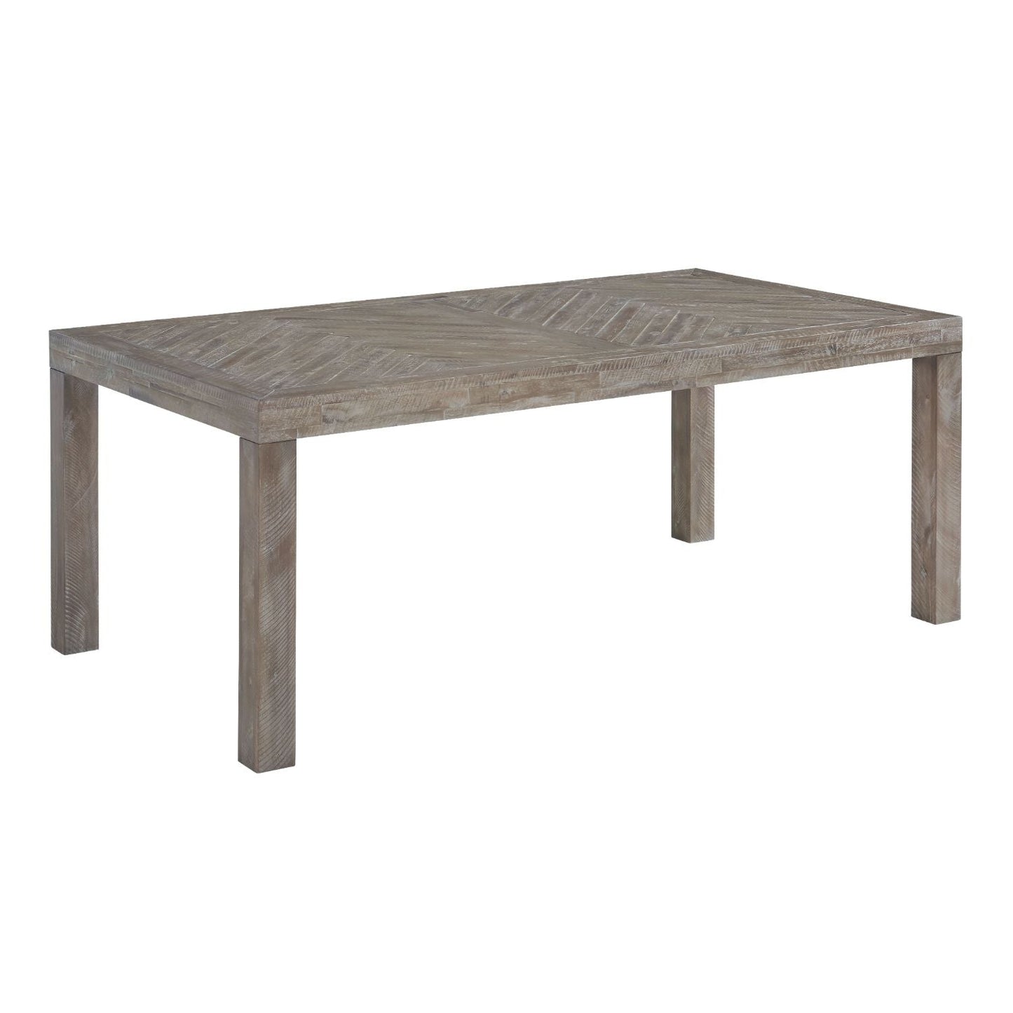 The Herringbone collection?s appeal comes from the beautifully roughhewn Acacia used in its creation. Hand-selected planks of solid wood are carefully sanded, stained and whitewashed for a driftwood appearance that accentuates the active grain and draws out natural knots and markings from the milling process. They are then inlaid over plywood to create a handsome herringbone pattern.