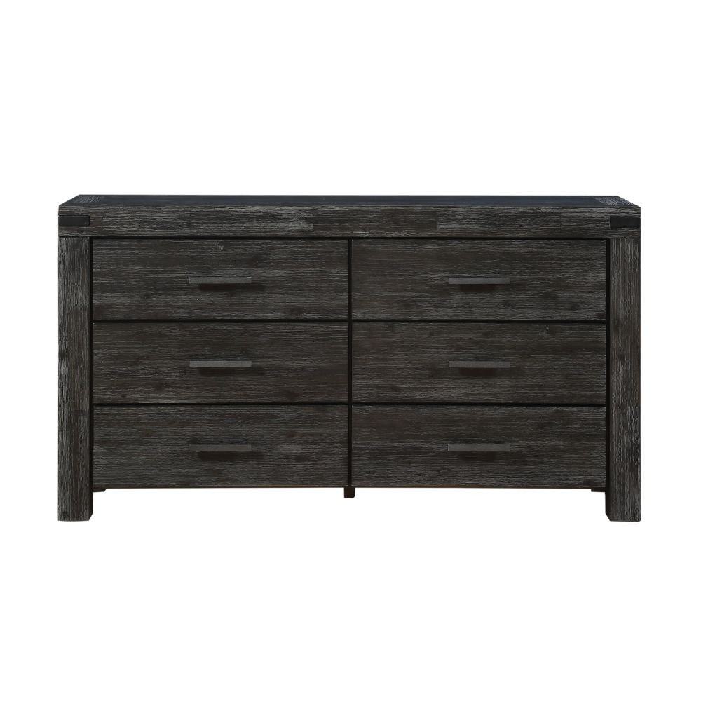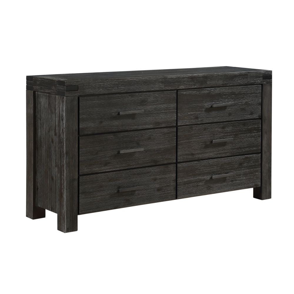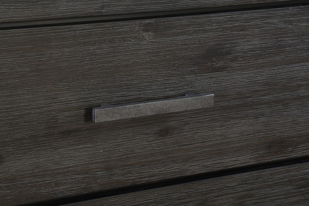 The Meadow collection is rugged durability and contemporary styling defined. Crafted from solid Acacia, its sleek lines showcase naturally occurring knot, grain and color variations inherent to the timber. Rustic wire brushing and a lightly glazed Graphite finish provide the perfect balance between modern and rustic.