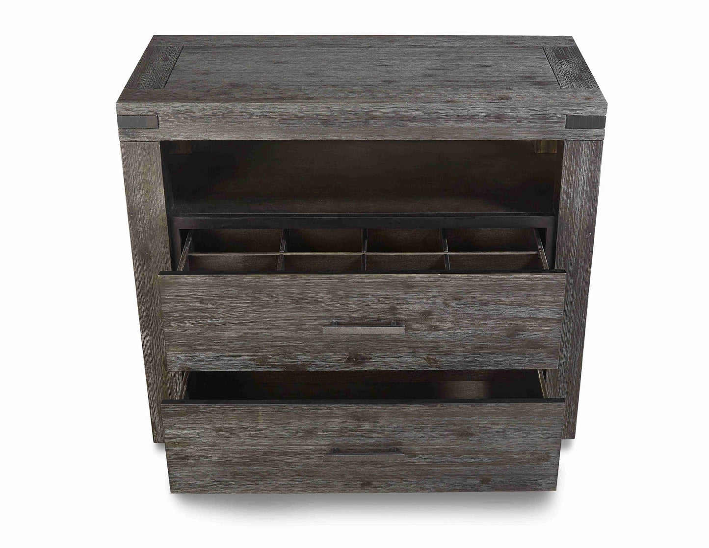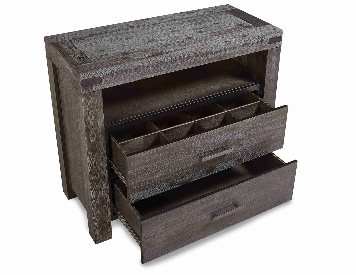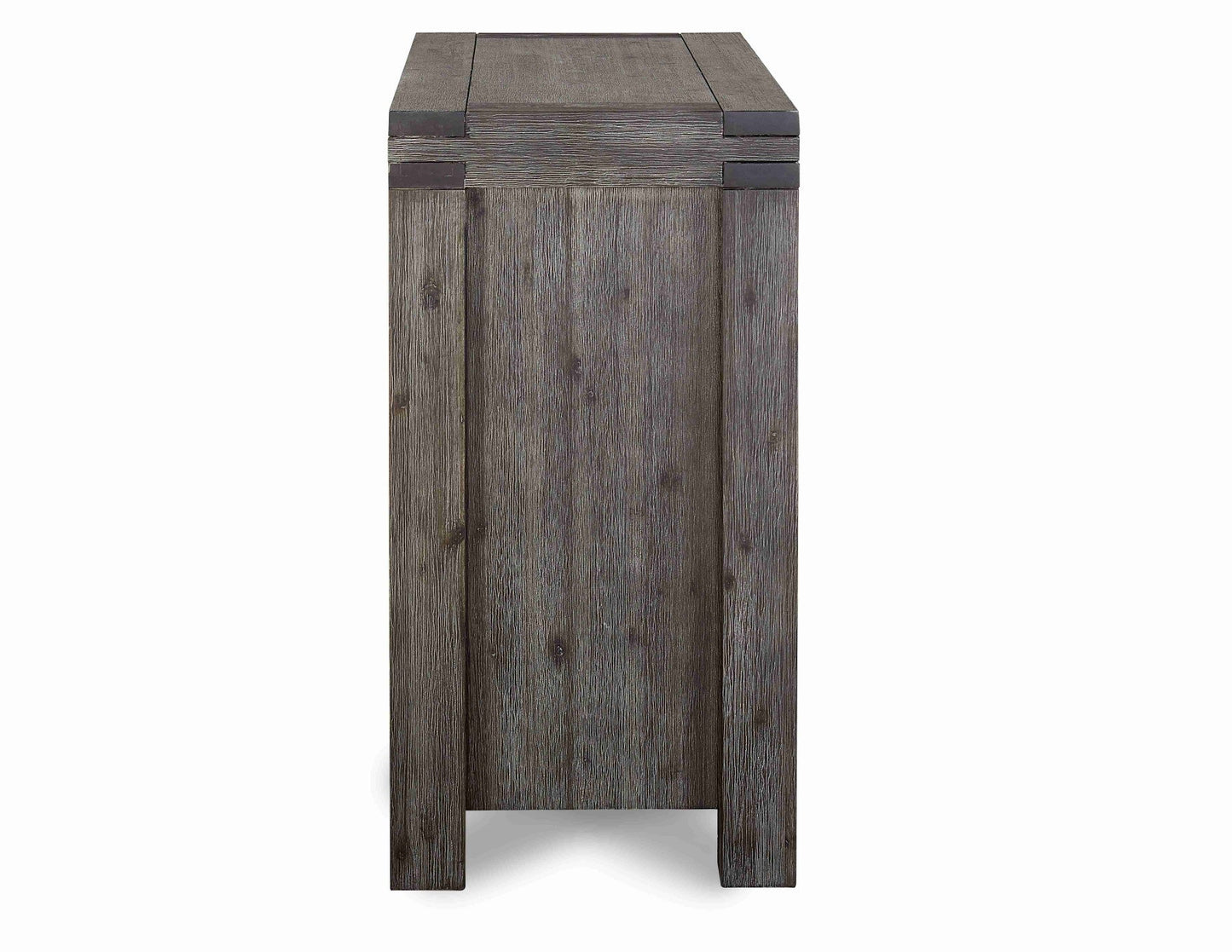 The Meadow collection is rugged durability and contemporary styling defined. Crafted from solid Acacia, its sleek lines showcase naturally occurring knot, grain and color variations inherent to the timber. Rustic wire brushing and a lightly glazed Graphite finish provide the perfect balance between modern and rustic.