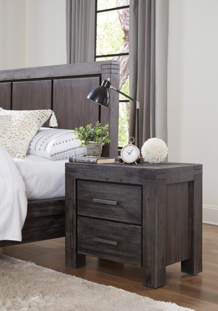 The Meadow collection is rugged durability and contemporary styling defined. Crafted from solid Acacia, its sleek lines showcase naturally occurring knot, grain and color variations inherent to the timber. Rustic wire brushing and a lightly glazed Graphite finish provide the perfect balance between modern and rustic.