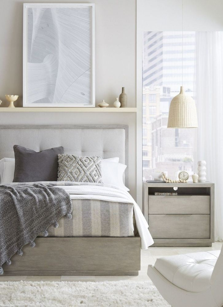 - Button-tufted headboard panel in yarn dyed gray linen, 100% polyester
