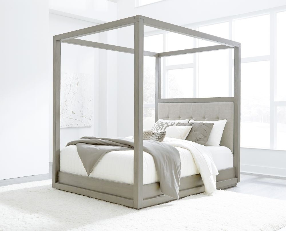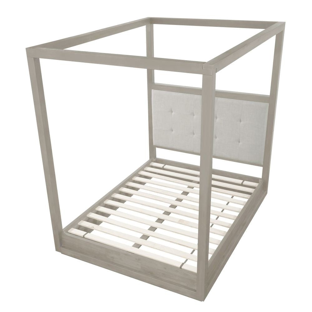 - Button-tufted headboard panel in yarn dyed gray linen, 100% polyester