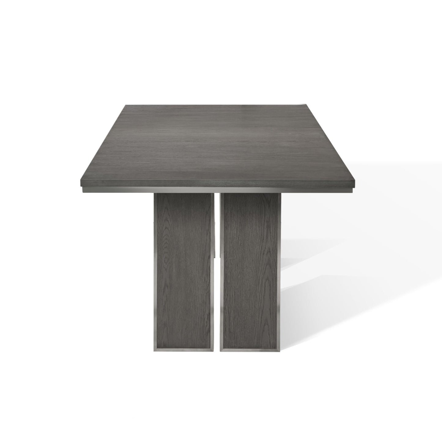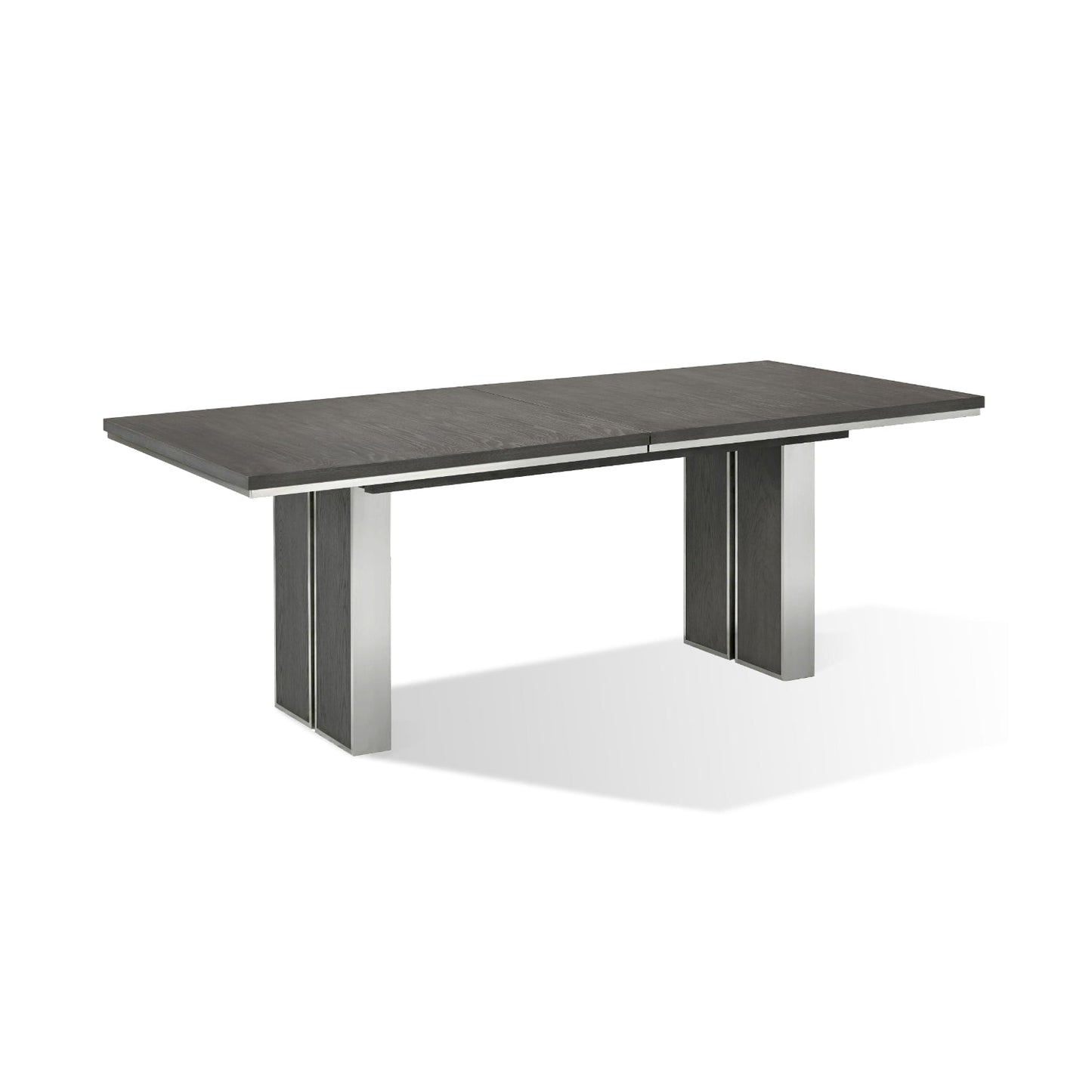 With stately proportions and a crisp silhouette, the Plata collection combines natural and manmade elements for a striking composition. White oak veneers are wire brushed to simulate the patina of naturally weathered wood then accented with brushed stainless steel for the perfect finish.