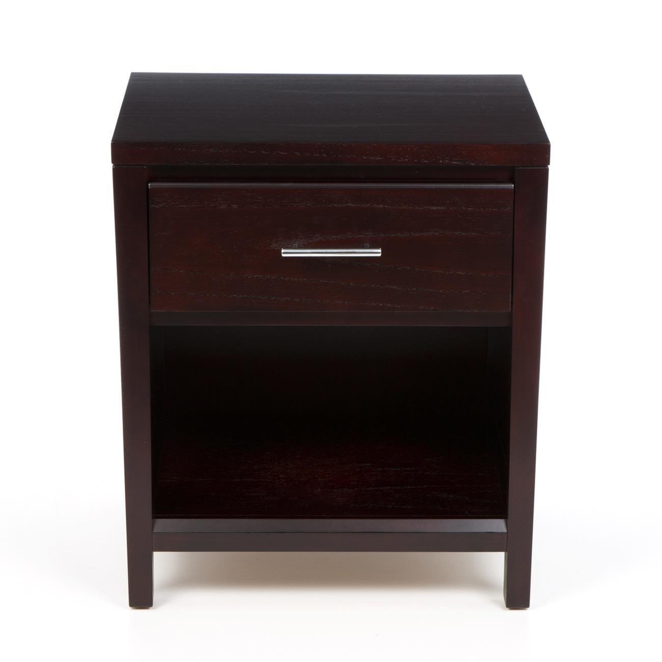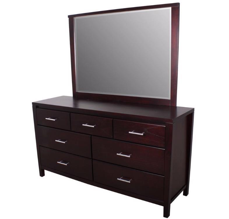 Crafted from Tropical Mahogany solids and a variety of beautiful veneers, the Nevis collection features solid wood drawer boxes with English dovetail joints on both front and back, full extension ball bearing drawer glides, and are corner blocked to ensure rigidity, making them as functional as they are sleek. The wide variety of pieces are enhanced by an elaborate American finishing process in a deep, dark Espresso, complimented by brushed chrome hardware. Together with a vast array of contemporary platform, low profile and sleigh bed styles, the Nevis collection blends the sleek and exotic with the functional.