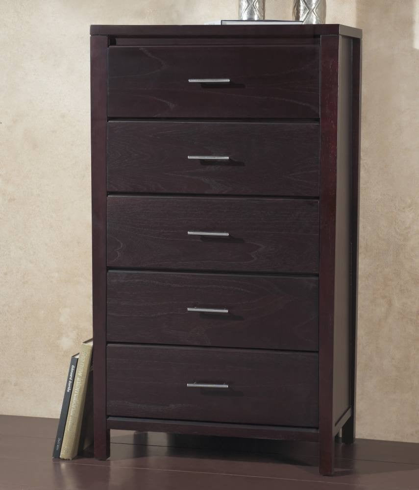 Crafted from Tropical Mahogany solids and a variety of beautiful veneers, the Nevis collection features solid wood drawer boxes with English dovetail joints on both front and back, full extension ball bearing drawer glides, and are corner blocked to ensure rigidity, making them as functional as they are sleek. The wide variety of pieces are enhanced by an elaborate American finishing process in either a rich Spice or a deep, dark Espresso, both complimented by brushed chrome hardware. Together with a vast array of contemporary platform, low profile and sleigh bed styles, the Nevis collection blends the sleek and exotic with the functional.